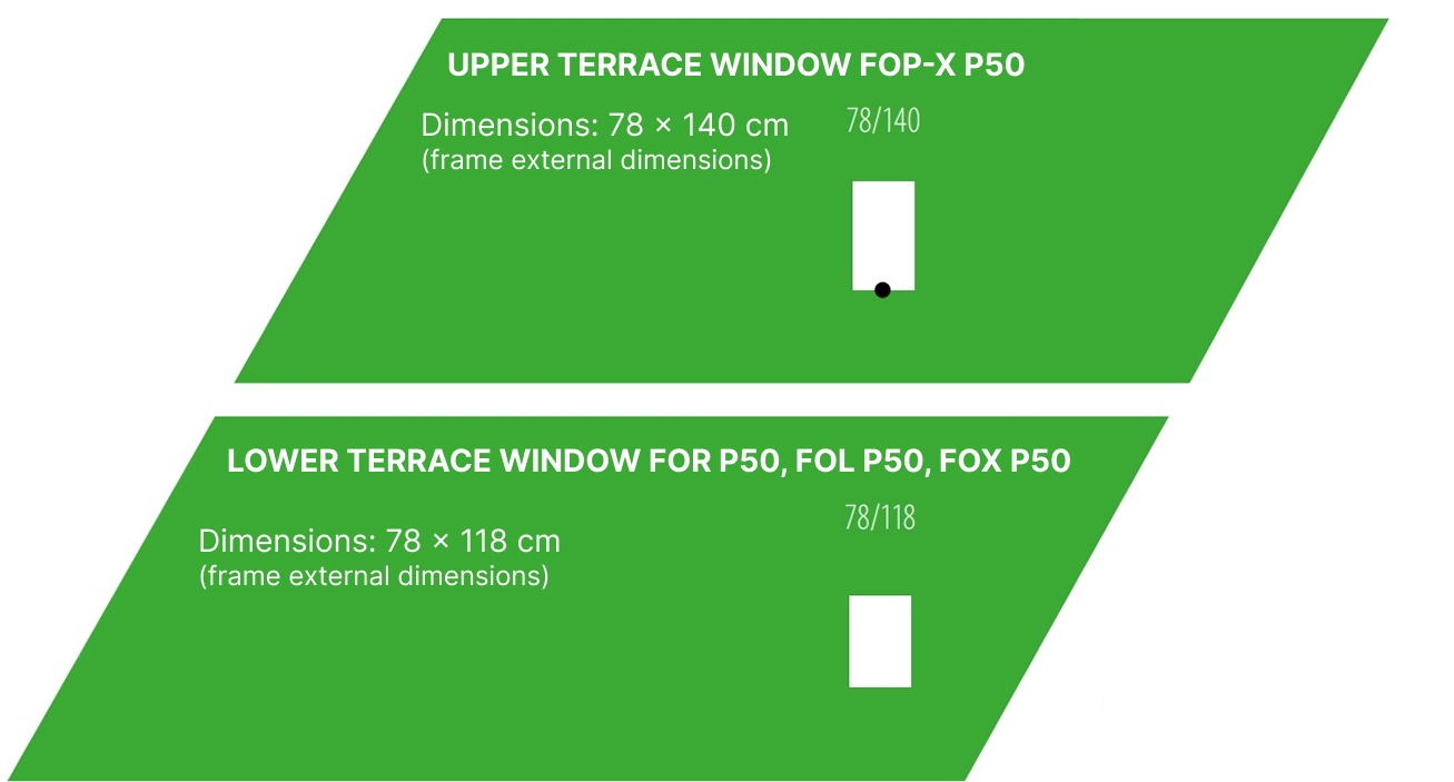 The sash in the upper window (FOP) opens upwards, while the lower one opens to the right (FOR), to the left (FOL), or remains fixed (FOX). Made of top quality pinewood and vacuum impregnated